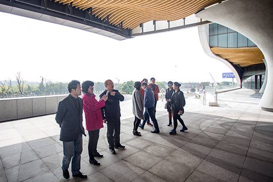 首先到訪領導們在環(huán)太湖董事長錢臣和副總經(jīng)理楊旭東的陪同下參觀了環(huán)太湖藝術城接待中心,全面了解了環(huán)太湖藝術城項目的整體規(guī)劃及建設情況。