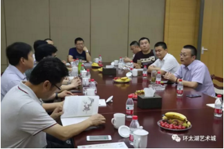 隨后到訪領(lǐng)導(dǎo)們?cè)谒囆g(shù)城會(huì)議室進(jìn)行了面對(duì)面的交流。楊志偉副總首先就環(huán)太湖藝術(shù)城的運(yùn)營(yíng)模式,盈利模式,人才培養(yǎng)及政策扶持等方面的經(jīng)驗(yàn),做法及成就進(jìn)行了詳細(xì)的介紹。他表示,地方政府的政策相應(yīng)扶持,促進(jìn)了藝術(shù)城文化氛圍的營(yíng)造與文創(chuàng)項(xiàng)目的發(fā)展;同時(shí),藝術(shù)城自身對(duì)現(xiàn)有工作人員的專(zhuān)業(yè)培訓(xùn),以及對(duì)于高素質(zhì)復(fù)合型人才隊(duì)伍的建設(shè),推動(dòng)了藝術(shù)城事業(yè)的健康發(fā)展。來(lái)賓們?cè)谠敿?xì)了解后,表示藝術(shù)城項(xiàng)目設(shè)計(jì)理念新穎,整體業(yè)態(tài)完整,是相當(dāng)好的文創(chuàng)企業(yè)代表,希望在今后能加強(qiáng)合作,交流。