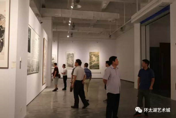 隨后來(lái)賓們進(jìn)入環(huán)太湖藝術(shù)中心美術(shù)館,在仔細(xì)考察展廳布局的同時(shí),也一并欣賞了“逍遙山水——顧平中國(guó)畫(huà)展”,他們對(duì)展館的整體設(shè)計(jì)風(fēng)格表示贊賞。
