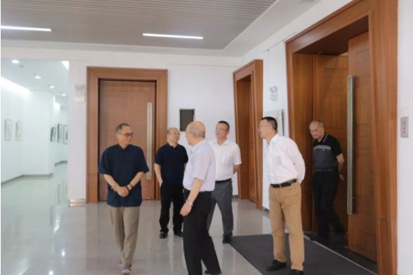 ↓領導們先后參觀了環(huán)太湖藝術城文化藝術中心一層的藝術展覽館和二層的木一堂畫廊以及多功能廳,錢臣董事長就文化藝術中心的空間布局以及整體規(guī)劃進行了詳細介紹。